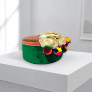 Himachali Traditional Kinnauri Topi with Green Patti and Pom-Poms Flower, Golden Chand on top Unisex Cap