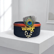Himachali Black Saneel Gotta Cap with Radhe Radhe Kalgi | Unisex Pahadi Topi for Himachal & Uttarakhand