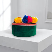 Himachali Traditional Kinnauri Topi with Green Patti and Pom-Poms Flower, Golden Chand on top Unisex Cap