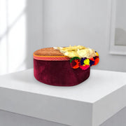Himachali Traditional Tweed Topi with Maroon Patti and Pom-Poms Flower, Silver Chand on top Unisex Cap